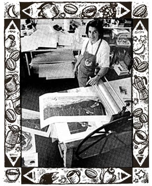 Karen Lybrand, Alaskan ex-pat currently living in Maine, created the unique image for our Alaska Moka Bar and together with Ray Troll created our original Santa Caws™ label art. She is also the font-trix for most of the lettering in our labels, as well as having created the Deadman's Reach map and compass rose. Click here to see more of Karen's work.