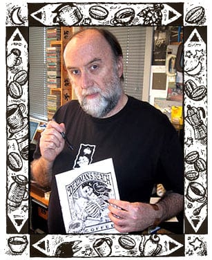 From his tree-top studio, high above the Tongass Narrows in Ketchikan, Alaska, Ray Troll draws and paints fish filled images that migrate into museums and onto t-shirts sold 'round the globe. A “dead”-icated Raven’s Brew Coffee addict, Ray downs a full pot each day to help create his intricate compositions. Ray created the logos, primary label art and much of the clipart for Raven's Brew Coffee, Deadman's Reach®, Bruin Blend®, Three Peckered Billy Goat®, Resurrection Blend®, Skookum® Blend and Wicked Wolf®. Find out more about what Ray's up to at his website.