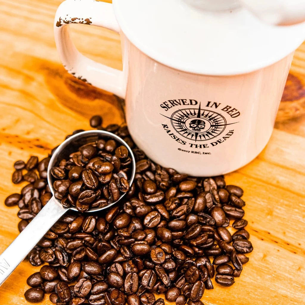 Deadman has been hearing all the hype for high caffeine and thought it was time to kick it up a notch and double his pace. Double Dead® coffee is made with the same exquisite beans that go into our famous Deadman’s Reach® coffee—but it has double the caffeine of a traditional cup.