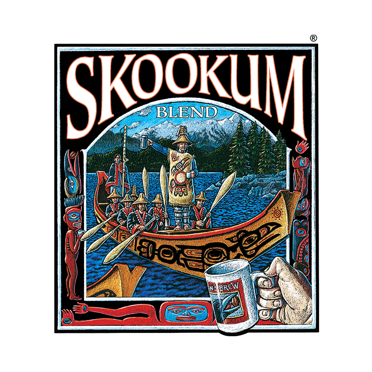 Whether it’s a war party or a barbecue, it calls for a fresh pot of Skookum®Blend, or why bother? This blend is as big, bold and natural as the Great Northwest. “Skookum,” from the Chinook trade jargon of the great first nations, means “Strong.” We named this unique blend in tribute to those great cultures and their heritage that has so enriched and instructed the lives of all of us.